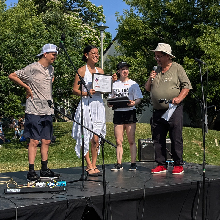 One of the highlights of the day was the pupusa-eating contest, sponsored by the Consulate of El Salvador in Toronto and Gloritas Coffee. On two occasions, three participants had a maximum of five minutes to finish the pupusas served on their plates. The winner was the one who finished first. And of course, the atmosphere had to match the spirit — while the contest was underway, the crowd cheered along to the song “A mí me gustan las pupusas” by the Salvadoran group Espíritu Libre, from the country where this delicious dish originated.